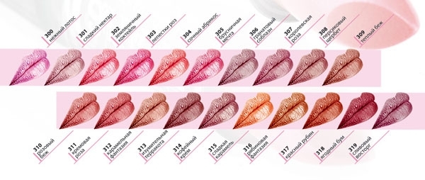 Настоящее совершенство Ваших губ и великолепие 20-ти ярких, модных и бесконечно притягательных оттенков.