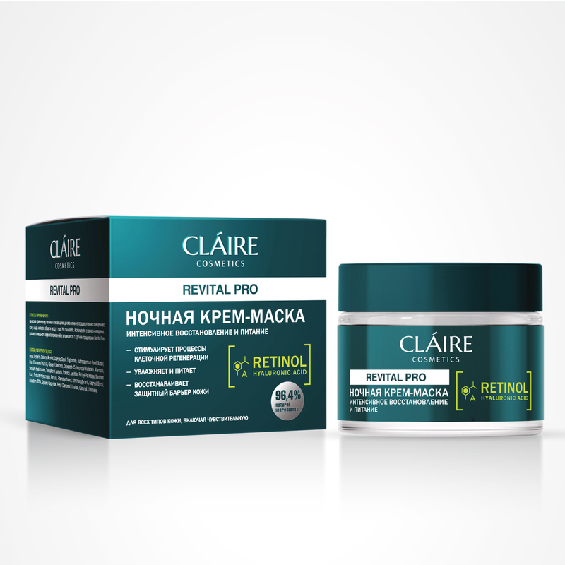 Интенсивное восстановление и питание кожи происходит именно в ночное время. Благодаря повышенной концентрации основных действующих компонентов ночная крем-маска Revital Pro активизирует этот процесс и насыщает кожу полезными веществами и витаминами эффективнее обычного ночного крема. Крем-маска работает на клеточном уровне, выравнивает тон и поддерживает необходимый водный баланс.